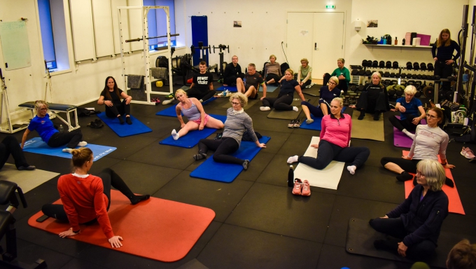 I træningslokalet var der mulighed for at opleve en træning live med Brian Sørensen, mens Anne Lolk inviterede indenfor til et mobilitetsprogram.