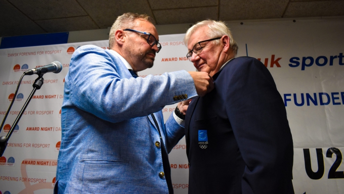 Det var ikke kun de dygtige roere, trænere og klubber, som ved Award Night i Hadsund blev hyldet. På vegne af bestyrelsen i forbundet, kunne formand Kasper Haagensen, overraske en af forbundets tidligere formænd, Morten Espersen, med et ærestegn.