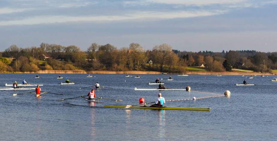 Den midtsjællandske sø lå klar og næsten strøget til roerne, da de begyndte at gå på vandet inden den første start der gik kl. 10.00. Og der var brug for at holde snor i udgang fra broerne, for deltagere var der nok af.