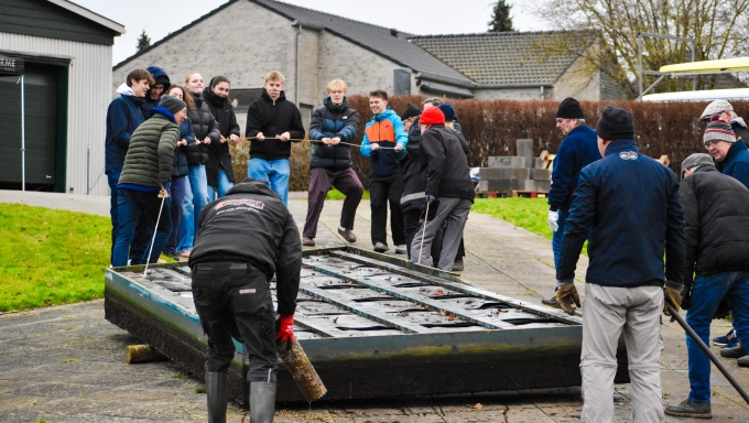 Som en ekstra 'tak for lån af klub og farvand' gav flere af roerne et nap med, da klubbens broer skulle tages op af vandet efter endt regatta.